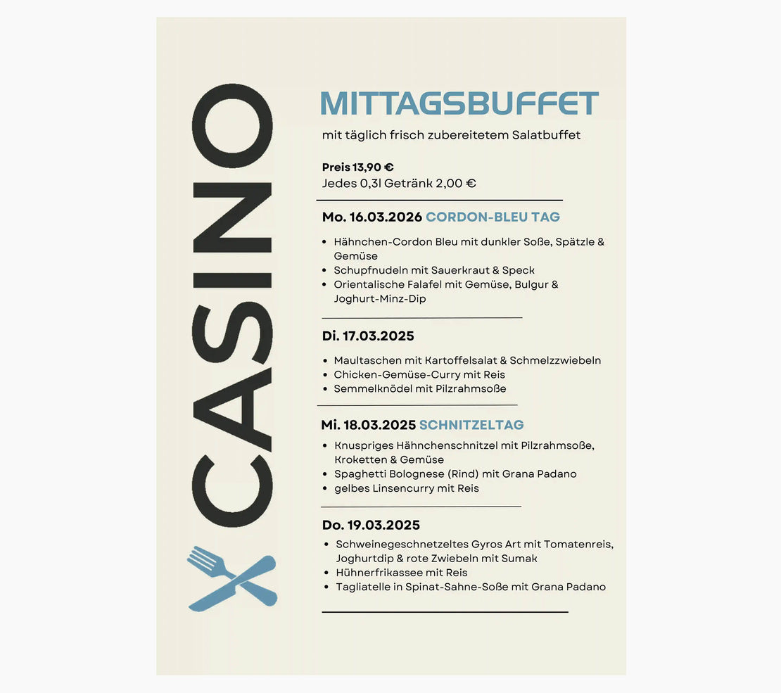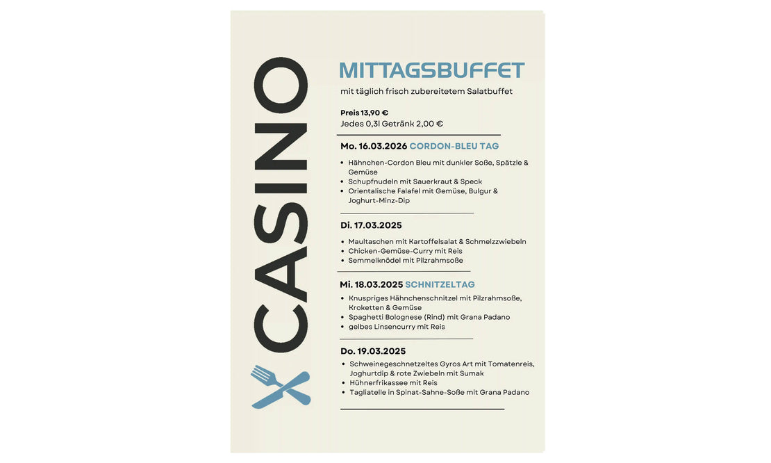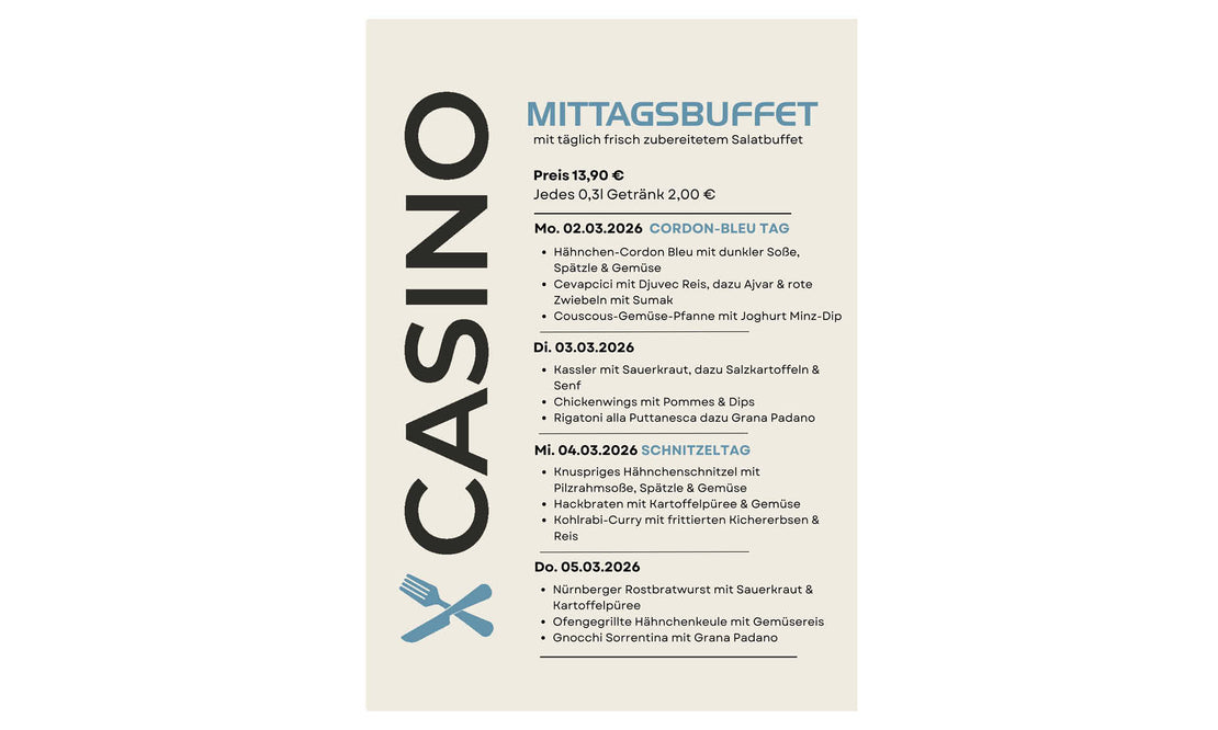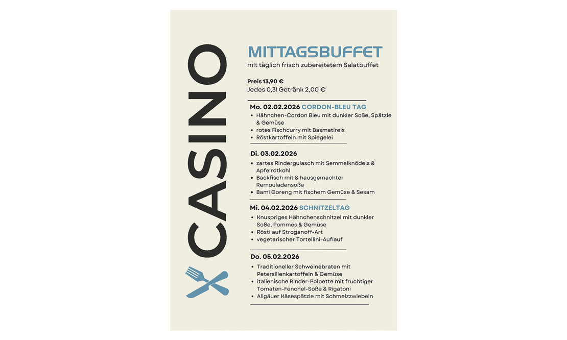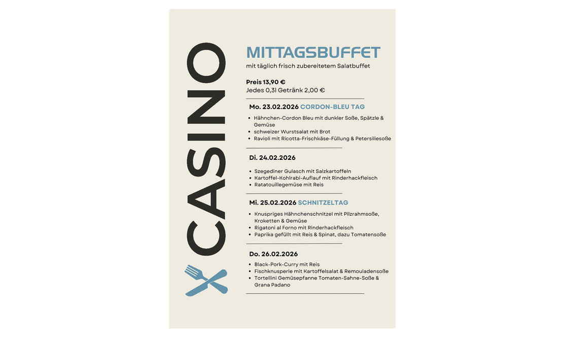 Ihr möchtet wissen, was wir diese Woche für euch vorbereitet haben? Hier könnt Ihr die Speisekarte als pdf herunterladen.