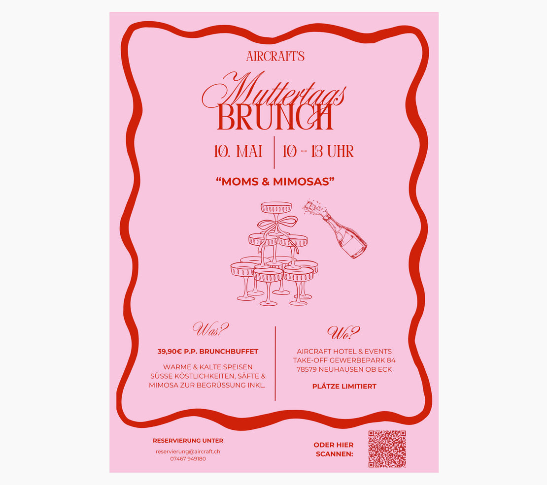 Am 10. Mai laden wir zum Muttertagsbrunch im aircraft ein. Unter dem Motto "Moms & Mimosas" feiern wir gemeinsam unsere Mütter und Großmütter und natürlich uns selbst.